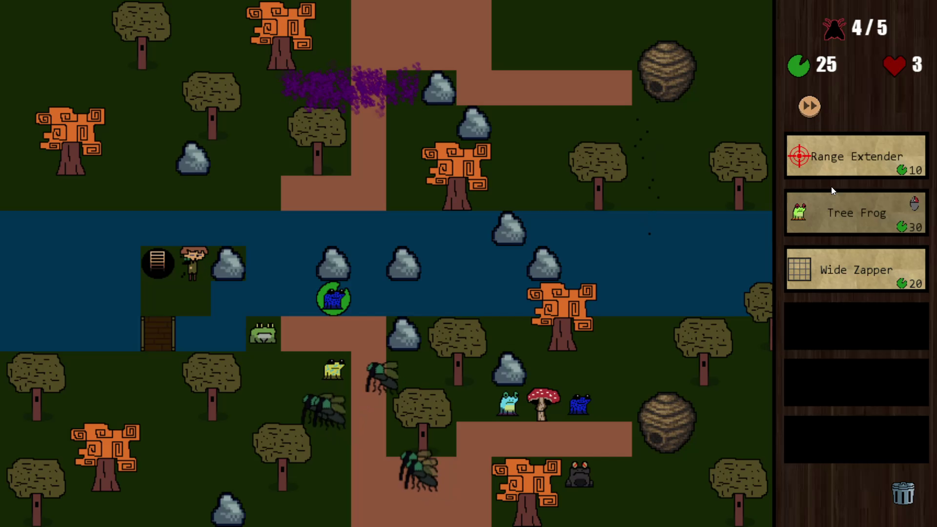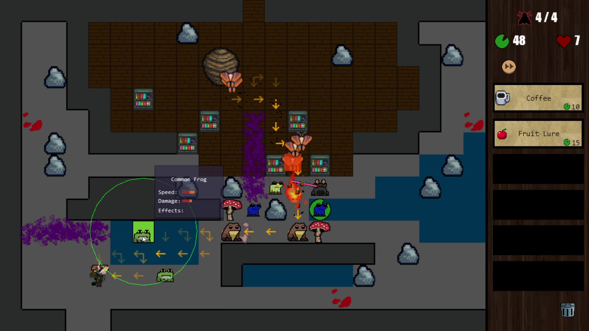 - Lily pads: Place frogs on Lily Pads for a 30% boost to damage, speed, and range.